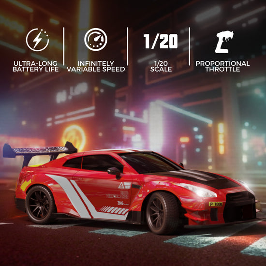 Racent 1:20 RC Drift Car 4Wd, 2 baterías, doble motor rojo